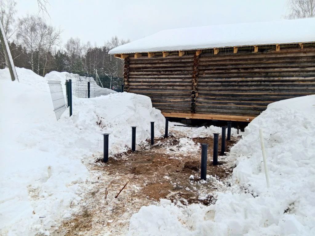 Закрутили 8 винтовых свай под санитарный модуль на рыболовной базе отдыха